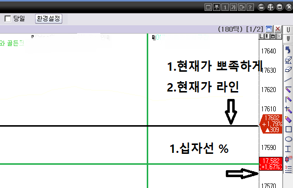 > 1.십자선: 십자선 옆에 가격밑에 % 도 나오게해주세요