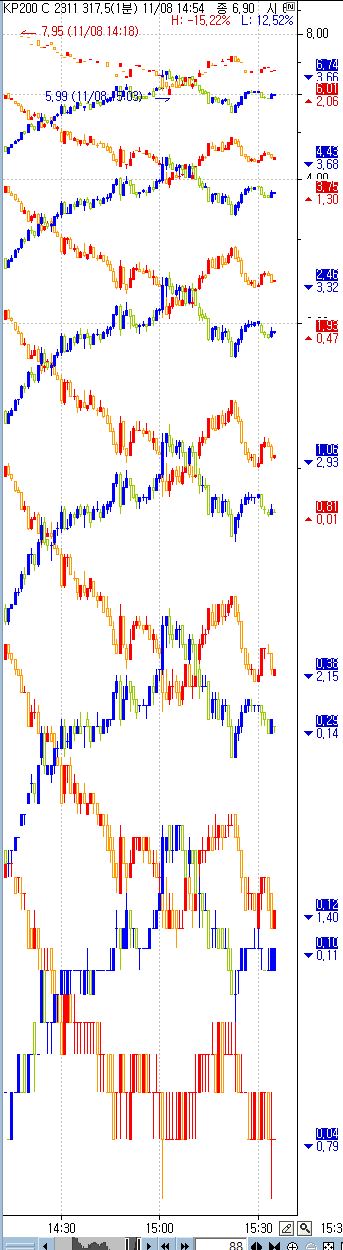 옵션교차챠트를 만들었는데, 그림과 같이 높은 가격대는 화면상 간격이 좁고 낮은 가격대는 넓게 나타납니다. 어떻게 설정을 바꿔야 할까요?