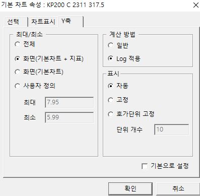 안녕하세요? 예스스탁입니다. 설정 창에 'Log 적용' 으로 선택되어 있는데, "일반" 으로 변경해 주시면 됩니다. 감사합니다. > 파란별 님이 쓴 글입니다. > 제목 : 설정문의 > 옵션교차챠트를 만들었는데, 그림과 같이 높은 가격대는 화면상 간격이 좁고 낮은 가격대는 넓게 나타납니다. 어떻게 설정을 바꿔야 할까요?