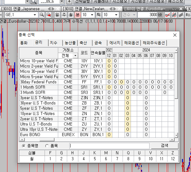 금리의 eurodollar 종목이 "종목 선택"에서는 선택 가능하나