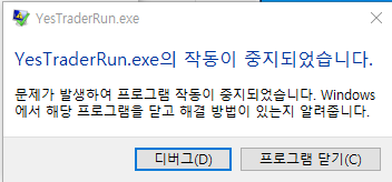 > 제목 : 에러 팝업 뜨면서 예스트레이더 죽음.