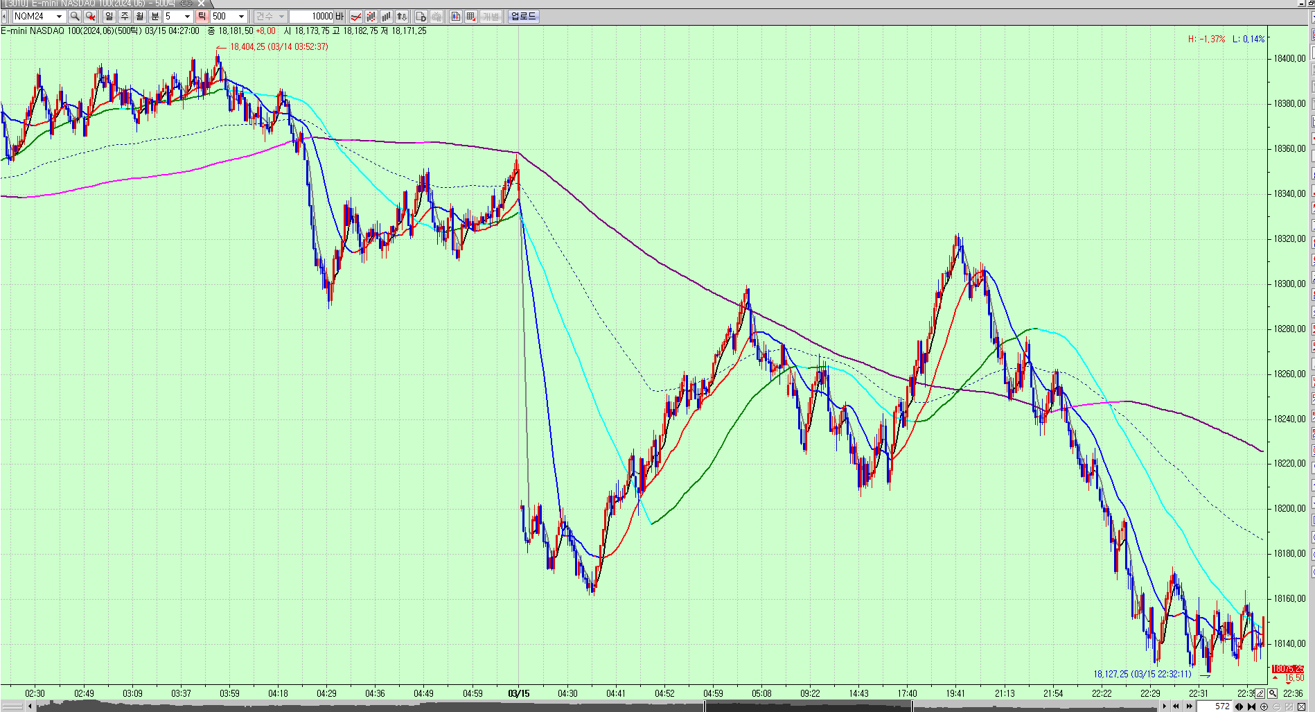 틱차트에서 900틱은 괜찮은데 500틱 이하정도 에선 통째로 시간대가 아예 끊겨서 안나옵니다.