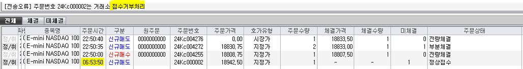 > 제목 : 거래소 접수거부 이후 주문이 진행안됨