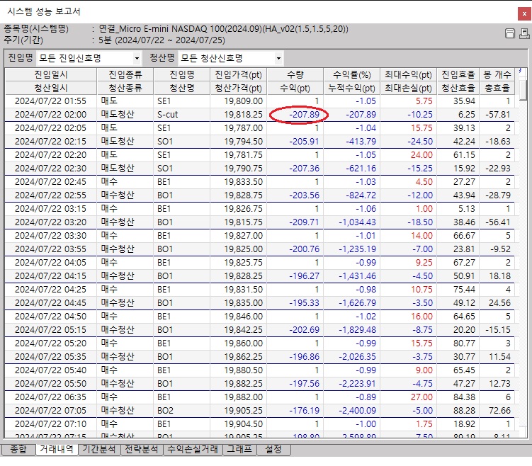 1. 첫거래에서 알수 없는 손실(-207.89)로 계산 됩니다.