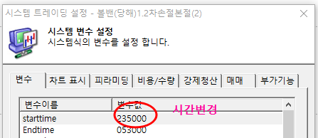 2.수식에서 설정된 시작시간은 변경하지 않고 시스템설정창에서 시작시간을 변경하면