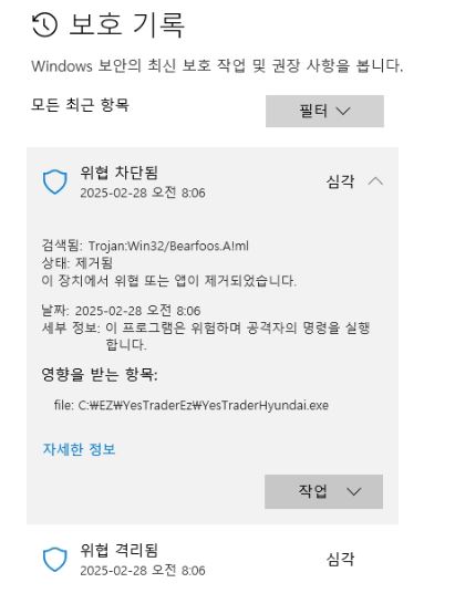 > 제목 : 재접속 후 바이러스 의심 증상 또는 오류