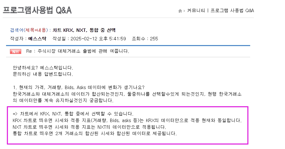 => 차트에서 KRX, NXT, 통합 중에서 선택할 수 있습니다.