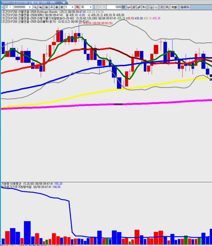 > 안녕하세요... 첨부한 화일은 90틱 차트입니다.. 90틱차트는 90틱이 체결될때마다 봉이 하나씩 생기는 걸로 알고 있습니다.. 그러면 각 봉의 거래량은 90으로 동일해야 할 것 같은데 실제 거래량이 봉별로 어떤 봉은 많고 어떤 봉은 적게 표시되는데 왜 그런지 알 수 있을까요?..... 감사합니다.