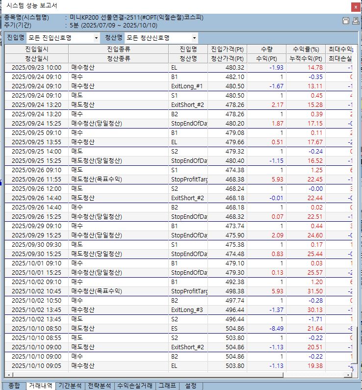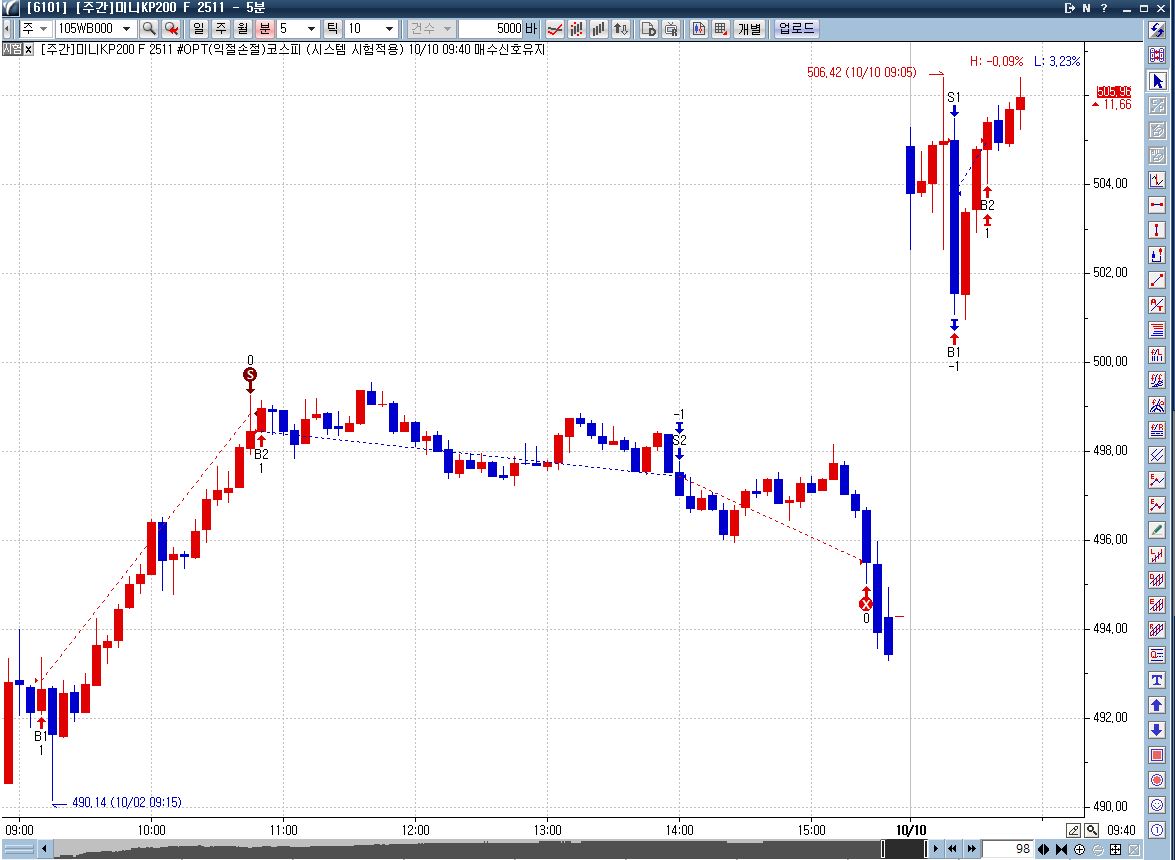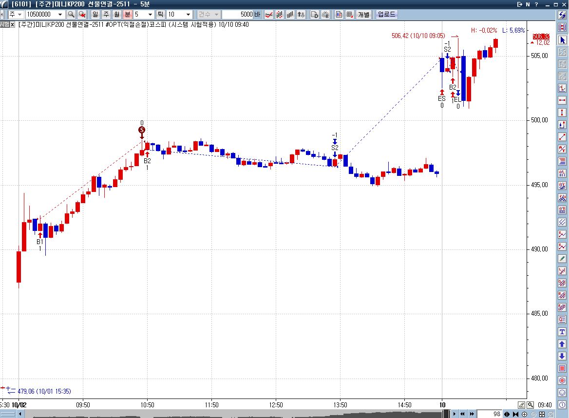 오늘 (10월10일) 매매에서 미니KP200 선물 연결에서
