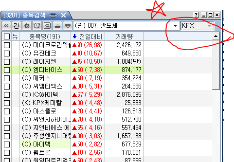 해당화면이 종목검색과 공용으로 사용하는 리스트인데