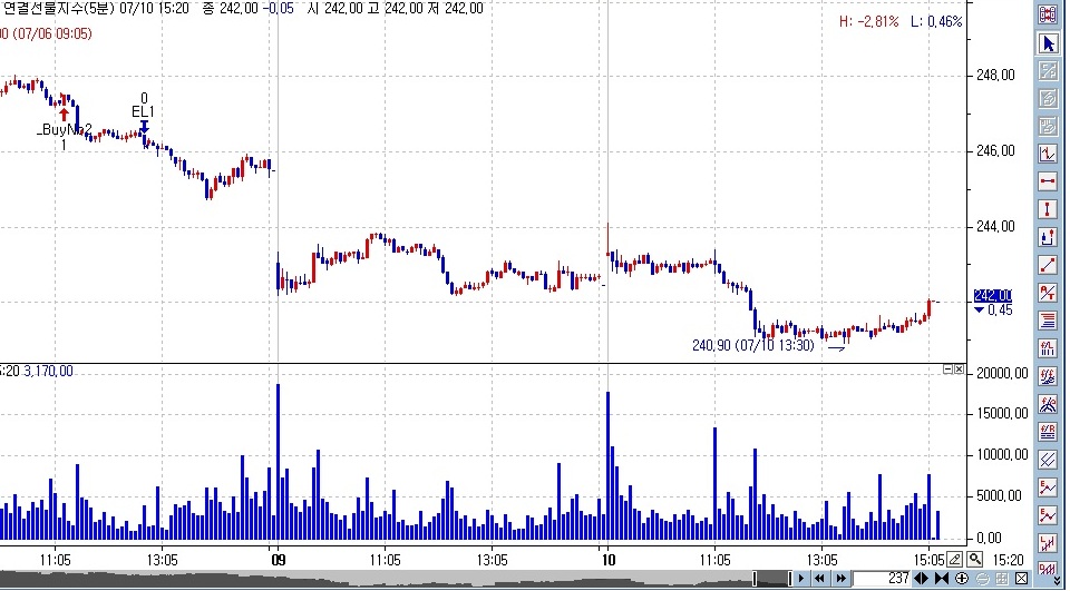 아래의 화면은 같은 전략을 3.1과 4.0베타에서 돌린 화면입니다.