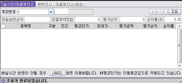 [1103] 계좌평가 화면은 계좌전체에 대한 평가가 목적이라서 장마감후 1회성 조회로