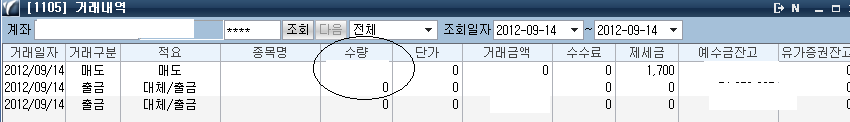 주식대용 매도했는데 수량자리에 수량 대신에 예수금 잔고와 비슷한 수치가 표시되네요..