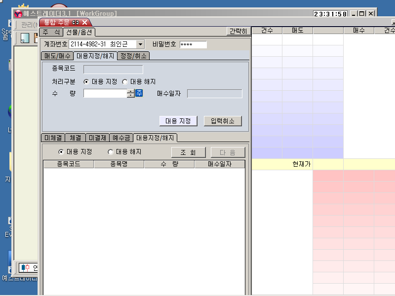 예스트레이더3.1에서는 대용 연결되어 있는 계좌가 지정되어 있는 경우에만 대용을 지정하거나 해제하실 수 있습니다.
