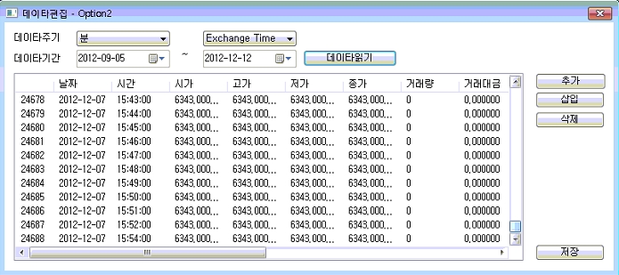 데이타매니저를 실행해서 데이타편집을 실행해 보면 12/7일까지의 데이타만 보여집니다. 12/10일 다른 틀을 불러왔었습니다.