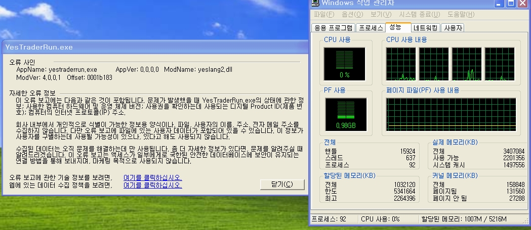 강제종료 현상이 발생되면 chartist@yesstock.com 으로 아이디를 알려주시면 저희가 원인을 파악하는데 도움이 됩니다. 해당 현상이 발생될 때 메일을 부탁드리겠습니다.