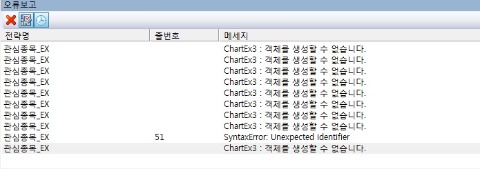 확장차트에 대한 에러가 지속적으로 나오고, 다시 저장을 해서 스크립트를 적용하면 그때서야 에러메시지를 출력합니다.