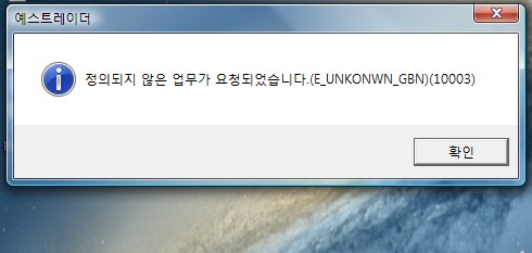 "정의되지 않은 업무가 요청되었습니다.(E_UNKONOWN_GBN)(10003)" 이라 뜨는데...