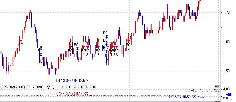 기존의 틱챠트에 시스템 걸고 저장후 예스트레이더를 다시 시작하면 진입 신호가 전혀 다릅니다.