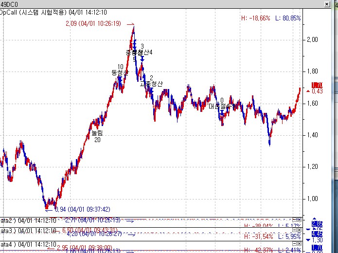 장시작후 한가한 데이타가 나올때 예스스팟을 걸면 챠트가 생성되네요...