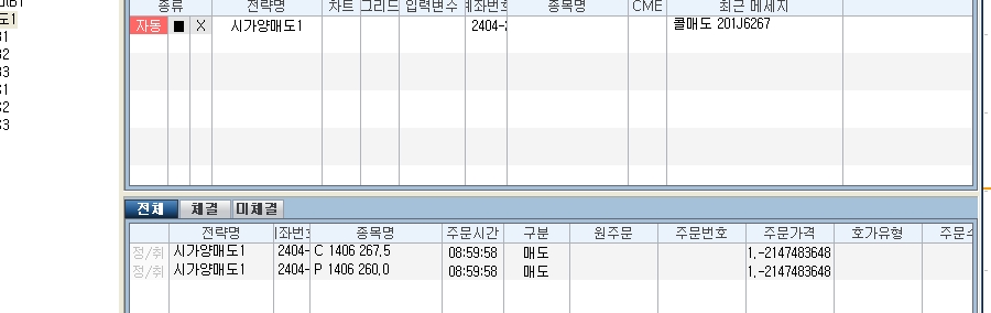 이 시초가 매도진입신호를 스팟에서 받아서 옵션중에 2.0이하 call과 put옵션을