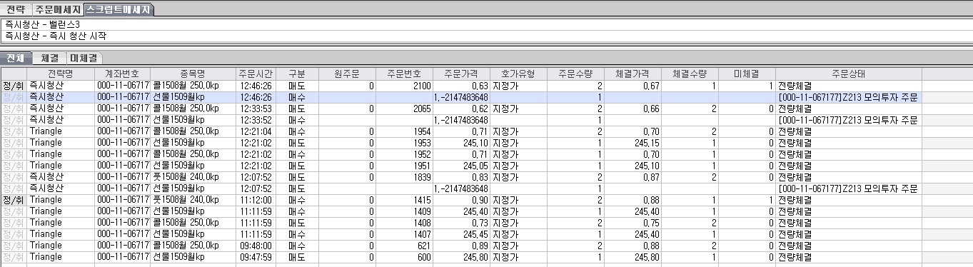 아래의 스팟스크립트를 실행하면 옵션종목에 대해서는 청산이 정상 수행되는데,