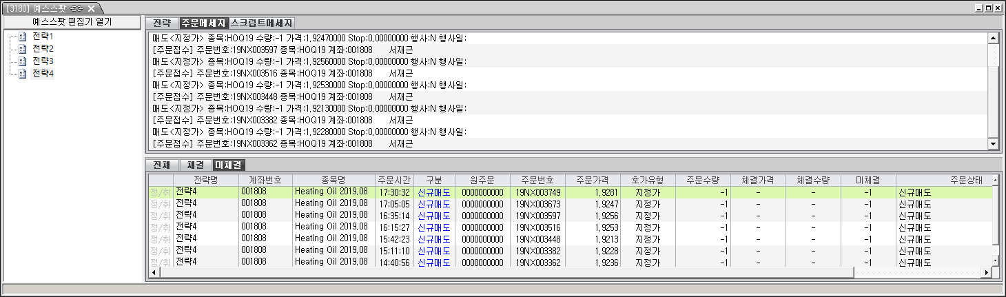 매수, 매도 동일하게 주문수량 -1로 주문 됩니다.