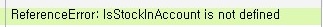 해당 메시지는 수식에서 IsStockInAccount라는 변수나 함수를 사용했는데