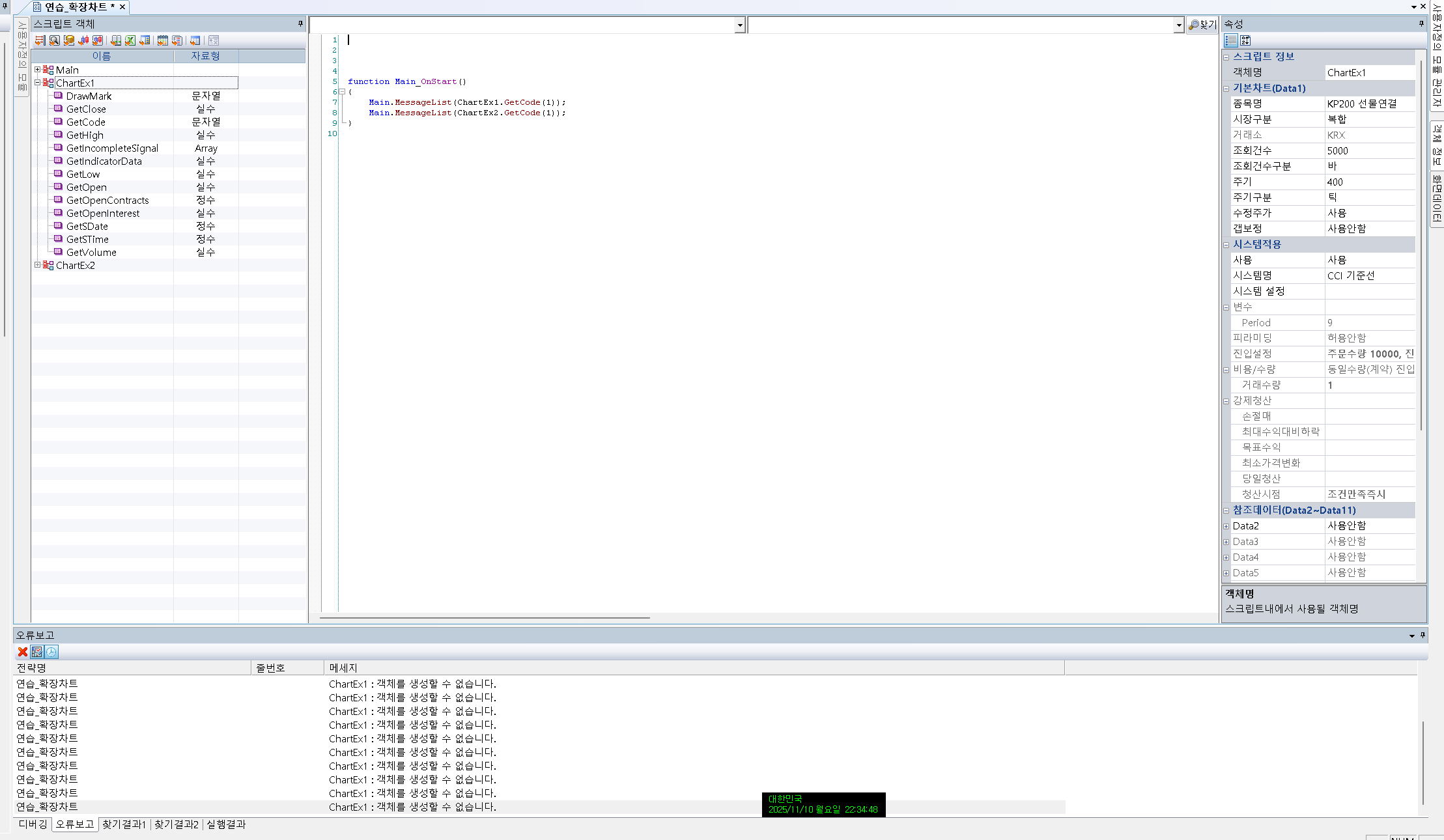 확장차트 스크립트 객체 추가 시 오류가 발생하는 데 이유를 알 수가 없습니다. 알려주세요.