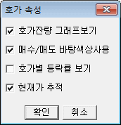 버튼을 클릭해서 호가정보 영역의 화면표시 속성을 변경할 수 있습니다.