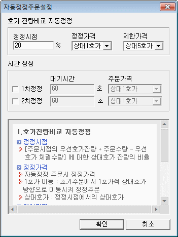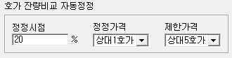 예)정정시점 20% 이하로 설정, 정정가격 상대1호가로 설정