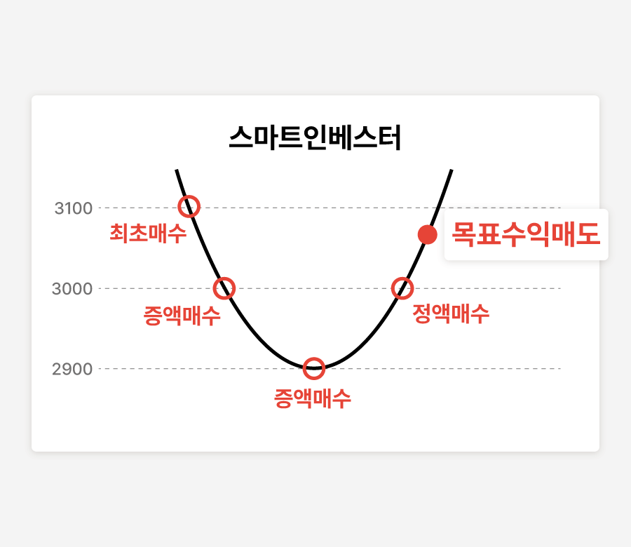 예측이 어려운 주식시장에서는 ‘시점을 맞추는 투자’보다 ‘변동성에 대응하는 투자’가 더 중요합니다. 스마트인베스터는 지수 변동폭을 기준으로 자동 분할매수를 실행하며 흔들림 없는 투자 기준을 제시합니다.