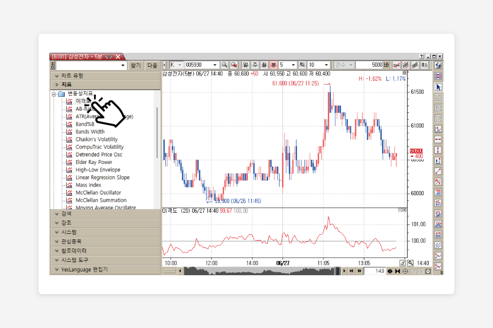 프로그래밍 경험이 없어도 누구나 단기간에 익힐 수 있으며, 나만의 지표나 전략을 직접 만들고 실전 차트 분석 및 자동매매에 자유롭게 활용할 수 있는 커스텀 스크립트 언어입니다.